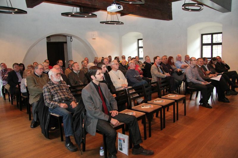 Bei den Vorträgen am Samstag ab 14.30 Uhr im Behaimsaal der Burg Hasegg waren alle Plätze belegt! Wer zu spät kam musste sich eine Sitzgelegenheit organisieren, das allein schon zeigte die hohe Akzeptanz und das Interesse an den Fachvorträgen. Leider musste heuer ein Vortrag (von Meinrad Pizzinini) kurzfristig abgesagt werden auch die geplante Ausstellungseröffnung von der Werkschau Helmut Zobls konnte auf Grund einer Erkrankung nicht stattfinden. Der kurzweilige Beitrag von Dr. Dietrich Klose über Vormünzliches Geld aus aller Welt und die medial toll aufgearbeitet Frage über die Münzsammlung Ferdinands von Tirol im Münzkabinett des Kunsthistorischen Museums Wien von Dr. Klaus Vondrovec ließen hinter die Kulissen eines Museumsbetriebs schauen.